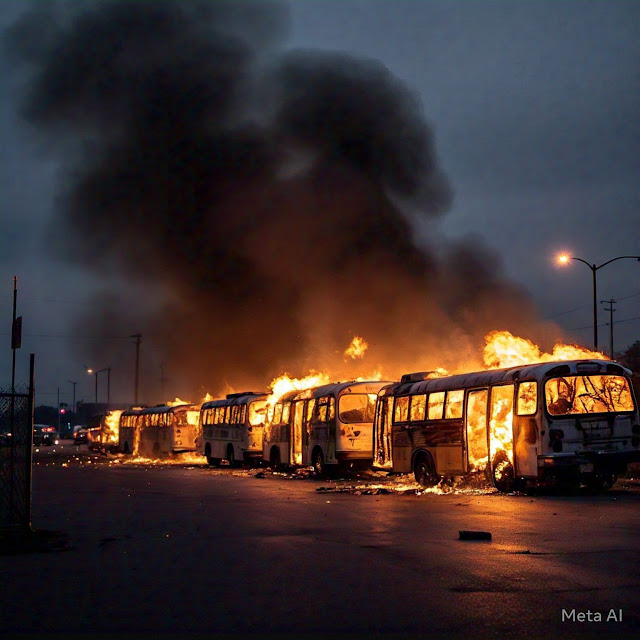 INCÊNDIO DEVASTA FROTA DE ÔNIBUS EM SIDROLÂNDIA
